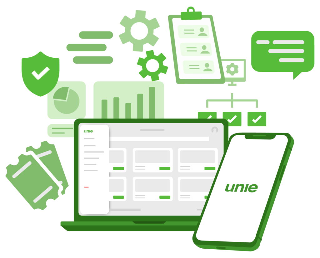 A UNIE é a plataforma de eventos para quem precisa de controle real. Em um só lugar, você cria o evento, configura ingressos e lotes, gerencia cortesias, rastreia afiliados/cupons e opera o dia com check-in e backstage. A operação de bar/bebidas e as rotinas no local seguem um padrão confiável — e você ainda conta com suporte rápido no WhatsApp (antes, durante e após) e relatórios/BI para entender performance e reduzir custos no próximo evento.
